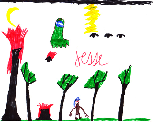 Nadat we al deze kennis over de wereld en afrikaan opgedaan hadden, was de kindervakantieweek er klaar voor om de Afrikaan opnieuw te ontmoeten en de stewardess te helpen. Maar, de afrikaan was nergens te bekennen! Wat bleek nou, hij had zichzelf en de stewardess in het bos verstopt! De groepjes gingen als een gek zoeken, en ja hoor, daar kwam de Afrikaan weer aan met de stewardess bij haar haar vastgepakt achter zich aan. We besloten alle gemaakte en verdiende spullen mee te nemen naar de koepel, en daar de afrikaan blij te maken(hopelijk!!). Geluuuuukkig,lukte dit! De Afrikaan vrolijkte bij elk gemaakt voorwerp meer op, de kinderen waren tenslotte ook zo enthousiast! Lizzy sloot een deal, de Afrikaan zou de stewardess laten gaan als wij beloofden de hoofdtooi deze week terug te vinden, ergens in het bos, waar hij natuurlijk beland was nadat het bananenvliegtuig neergestort was!