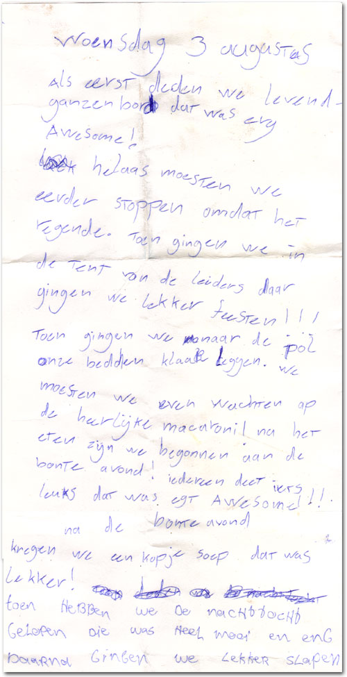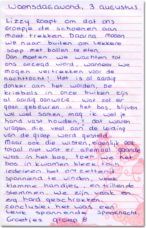We begonnen de woensdag vol goede moed. De kinderen waren erg enthousiast, er stond weer een heel avontuur te wachten! Voor het ene kind een nachtje van huis weg, voor de ander later dan ooit naar huis gaan na een dag spelen! De stemming zat er al snel goed in.