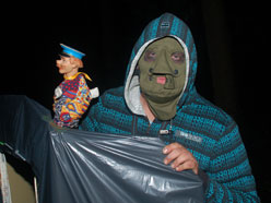 Iets eerder dan gepland besloten we om naar de sporthal te vertrekken, zodat we nog redelijk droog aankwamen en lekker de bedjes klaar konden zetten voor de lange avond. Om half 6 was het tijd om te eten, macaroni! Toen de buikjes weer vol zaten konden we de bonte avond voorbereiden. Dit was allemaal snel geregeld, de bonte avond kon beginnen! Er zat veel variatie in, de kids en leiding waren erg creatief. Alles ging van een leien dakje, totdat we de chinees erbij riepen… Lizzy belde de tolk, (gelukkig had Luuk voor 1 miljoen op de bankrekening van de tolk gezorgd!!) en we begonnen met ondervragen. De chinees deed nog raarder dan ’s morgens… hij had een groot geheim, en plotseling kwam hij met het idee om dat in het bos te gaan verstoppen. De kinderen dachten even terug aan de aanwijzing van dinsdag: de banaan is gestolen door iemand met rare ogen.. alles werd duidelijk, de chinees wist waar de banaan was!! We probeerden hem met alle macht tegen te houden, maar het was al te laat.. hij kreeg een hele enge lach en verdween. Er zat niks anders op, we moesten het bos in om de banaan te redden..