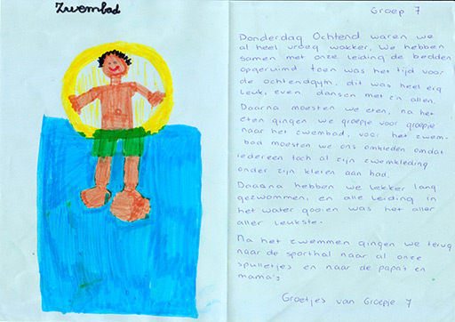 Daarna zijn de kinderen en de vrijwilligers samen naar het zwembad gelopen om fijn een hele ochtend te kunnen zwemmen. Na het zwemmen zijn we teruggelopen naar de sporthal, waar de ouders al klaar stonden om de kinderen en de slaapspullen op te halen.