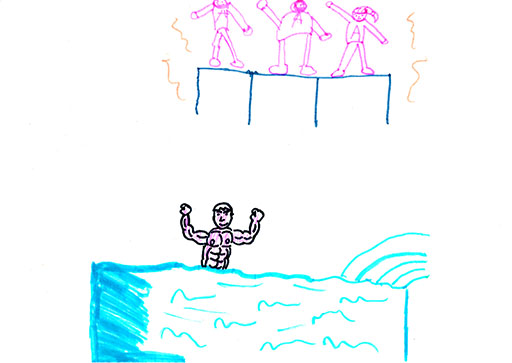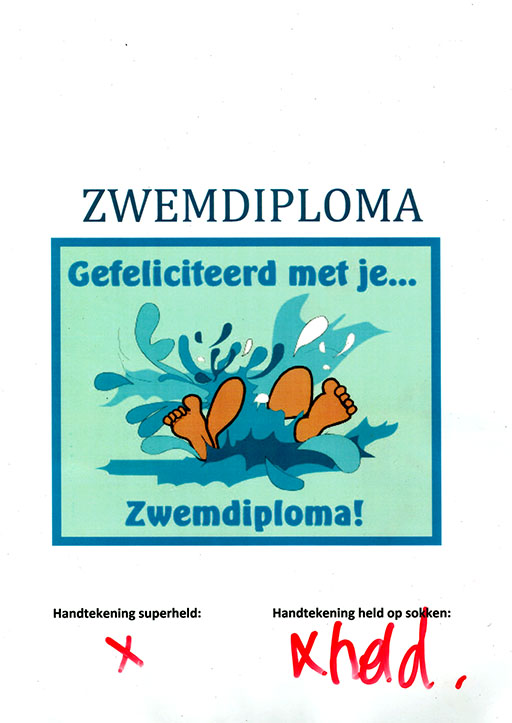 We waren al om 7 uur wakker toen hebben we een kussen gevecht gedaan. Vervolgens zijn we lekker buiten gaan eten. Rond kwart voor 11 liepen we richting het zwembad. Toen zijn we gaan zwemmen. We moesten de held op sokken een salto leren maken het zwemmen was erg leuk. Na het zwemmen zijn we naar huis gegaan.